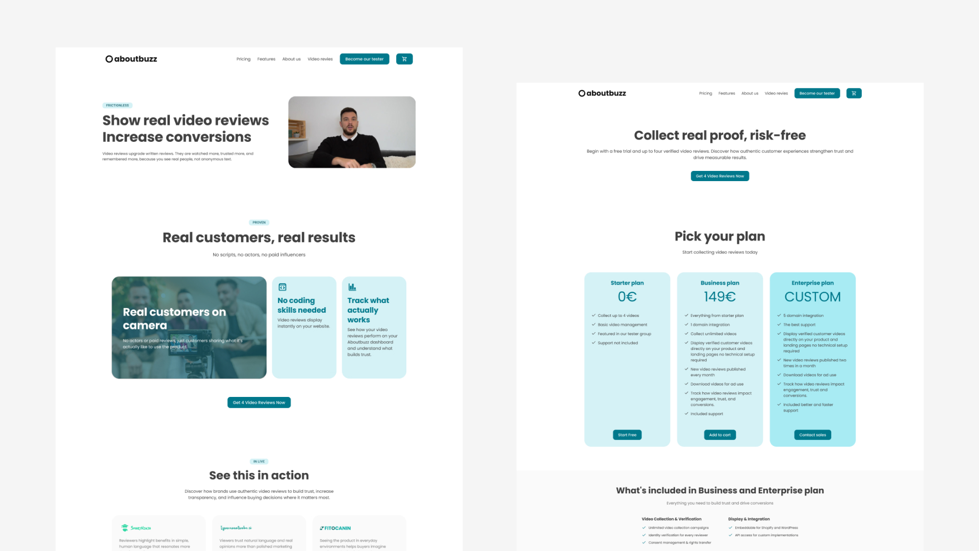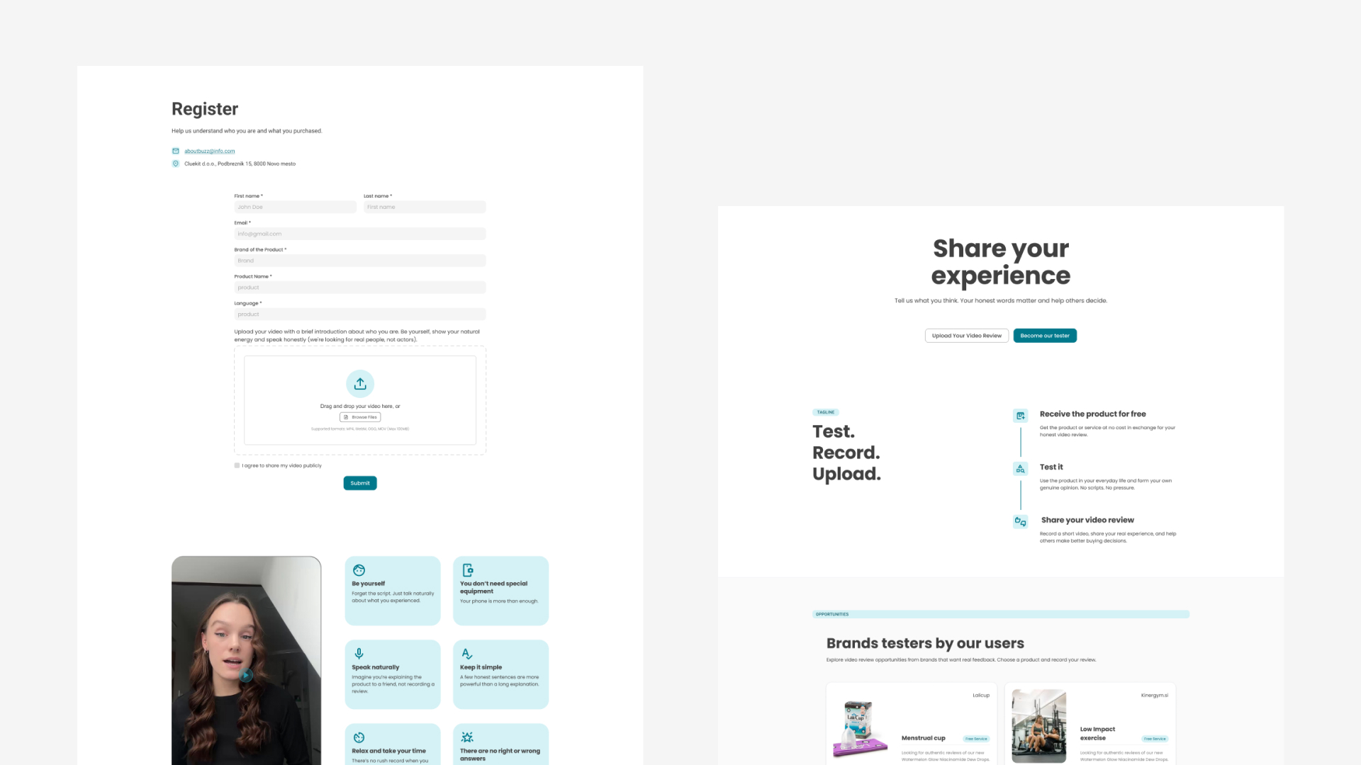 The project focused on designing a website that presents the agency’s video review service to companies while also attracting potential video reviewers. The main challenge was to clearly communicate the value of video reviews to businesses and show how they outperform traditional written reviews in authenticity and engagement. At the same time, the website needed to allow interested users to apply to become video reviewers through a simple and clear recruitment flow. This required balancing two audiences on one site: companies looking for trustworthy customer feedback and individuals willing to create review content. The design therefore focused on building trust, explaining the business benefits, and creating a clear funnel for both recruiting reviewers and converting potential clients.